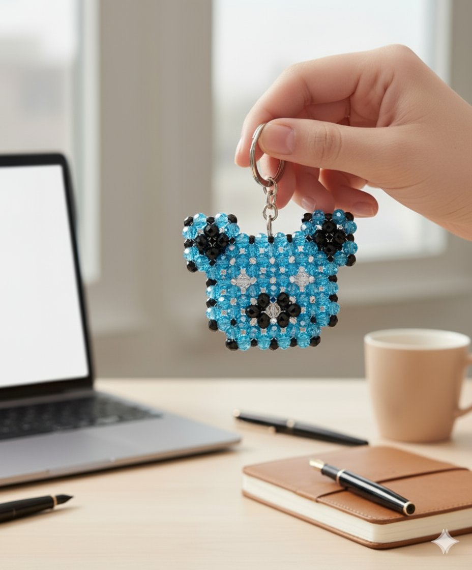 Brighten up your everyday essentials with this delightful handmade beaded bear keychain. Crafted with care and precision, this charming accessory features a sturdy metal ring and a beautifully woven bear figure made from high-quality, sparkling beads. The intricate design and vibrant colors make it a standout piece that will bring a smile to your face.